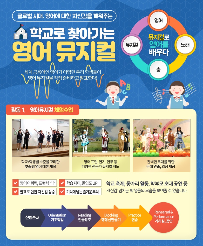 ¿µ¾îµå¶ó¸¶ ¼ö¾÷ÀÇ ÁøÇàÀº (1)³Î¸® ¾Ë·ÁÁø ¿µ¾î¿¬±Ø, ¿µ¾î¹ÂÁöÄÃ, ¿µÈ, µ¿È À̾߱⸦ ÅëÇØ ±³À°Çϰí (2)´Ù¾çÇÑ µîÀåÀι°À» ¿µ¾î·Î ÀÌÇØÇϰí Ç¥ÇöÇϱ⸦ ¹è¿ì¸ç, (3) ¿µ¾î¿ªÇÒ±Ø, ¿µ¾î µå¶ó¸¶ °ÔÀÓ, ¿µ¾î¿¬±Ø³îÀÌ µîÀÇ ½ÅüȰµ¿À» ÅëÇØ ¿µ¾î¿¬±Ø°ø¿¬Áغñ¿¡ Àû±ØÀûÀ¸·Î ÀÓÇÒ ¼ö ÀÖ°Ô ÇÕ´Ï´Ù.