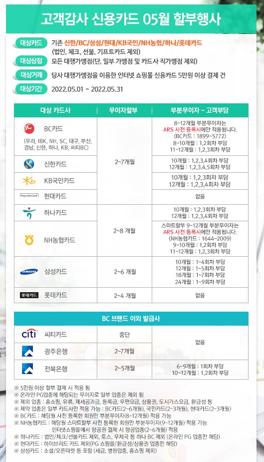 5¿ù ½Å¿ëÄ«µå ¹«ÀÌÀÚ ÇÒºÎ